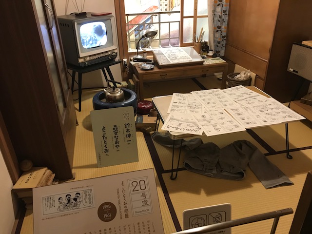 マンガミュージアムは2階立てて、1階は企画展示、2階は住居や暮らしの再現がなされており、各部屋に住まれた先生の名前も書かれています。